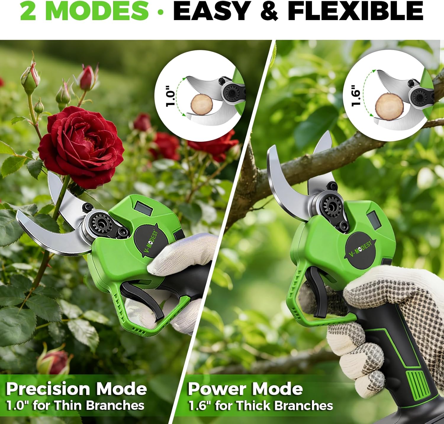 | Included Components | 1 electric pruning shears, 1 extra blade, 1 shoulder strap, 1 pair of gloves, 1 bottle of lubricant, and 3 matching tools, 1 fast charging dock, 2x4.0Ah batteries, 4 modular poles |