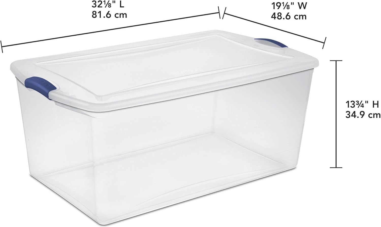 2 Pack 105 Quart Extra Large Clear Plastic Storage Bins with Lids & Blue Latches, Heavy Duty Stackable Organizer Bins for Home, Closet, Bedroom, Garage, Dorm