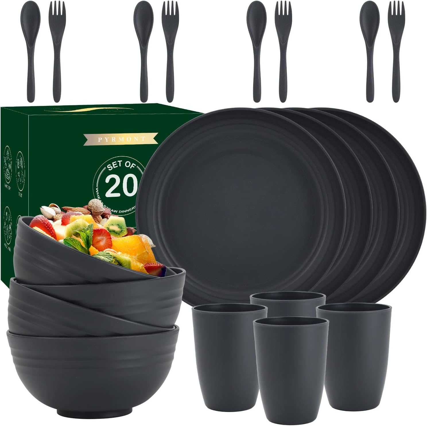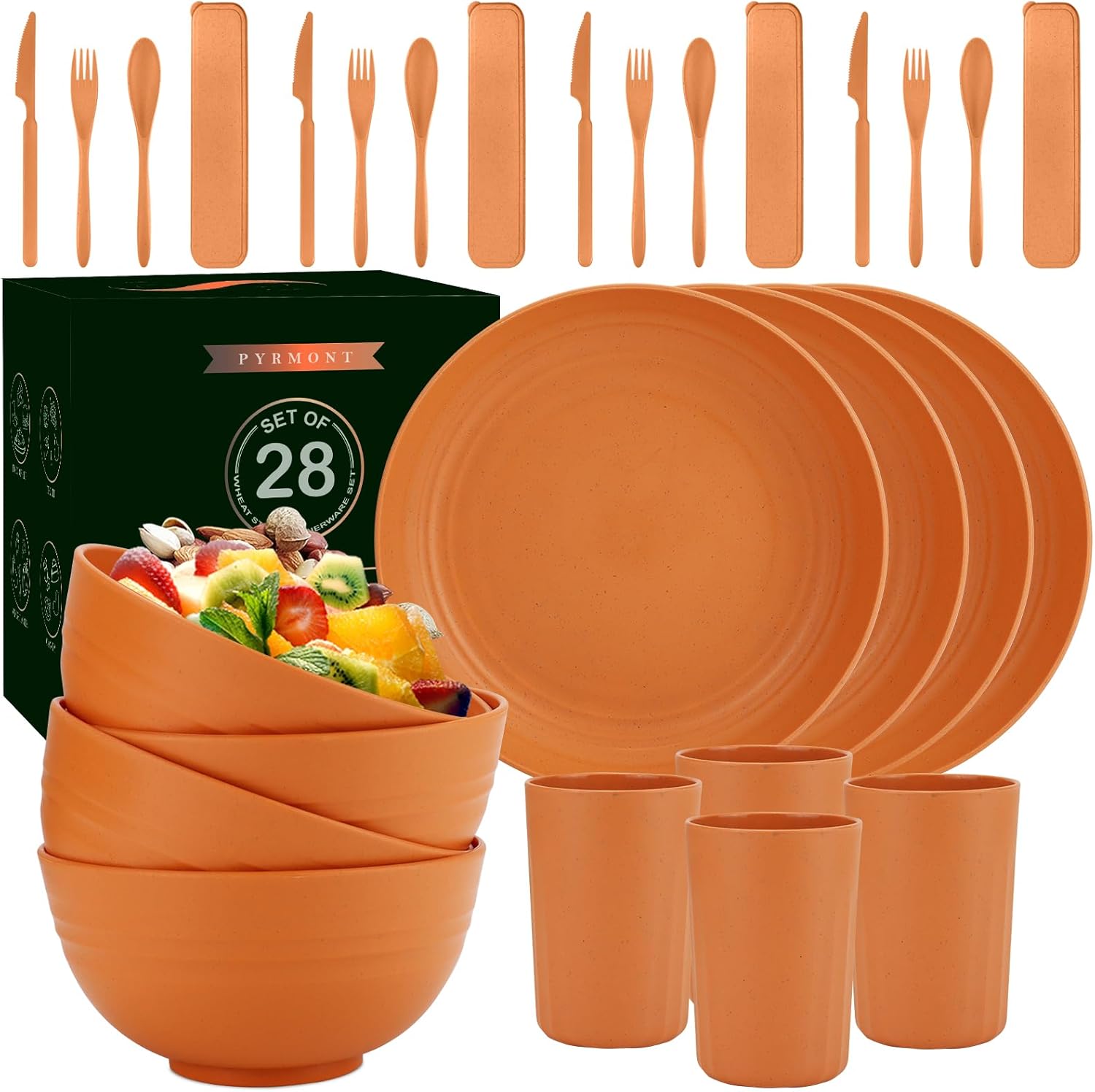 • 【SAFE WHEAT STRAW MATERIAL】PYRMONT 40-piece wheat straw dinnerware sets are made of premium wheat straw fiber,which is reusable,100% BPA-free,non-toxic,odor-resistant.These durable dinnerware sets ensure your and your family's safety without compromising quality.