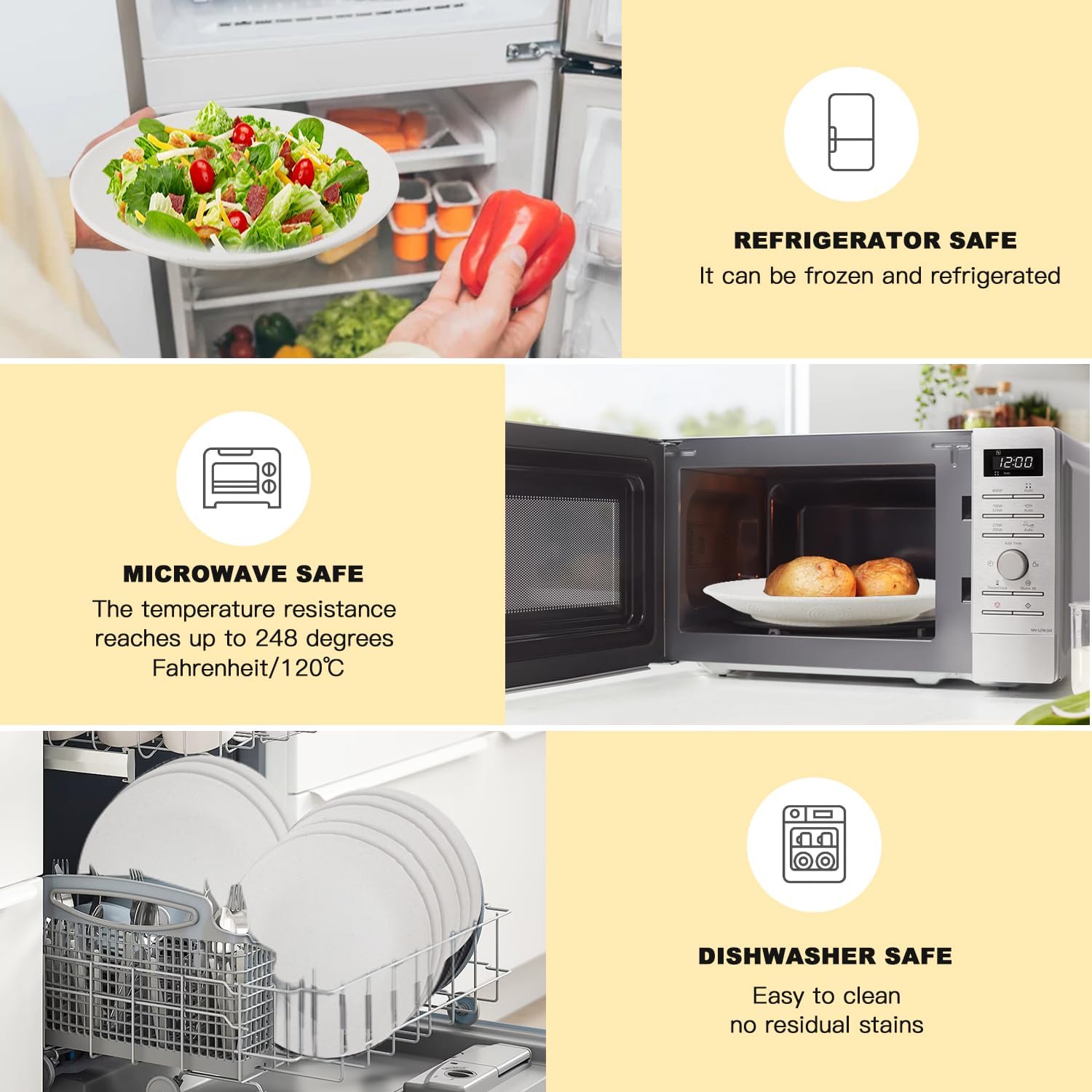 • 【DISHWASHER & MICROWAVE SAFE】Toss it in the dishwasher or microwave (up to 248°F/120°C) without worry.Our tableware has a very smooth surface that can be easily cleaned with a dishwasher,helping you enjoy a relaxed and enjoyable post meal time.