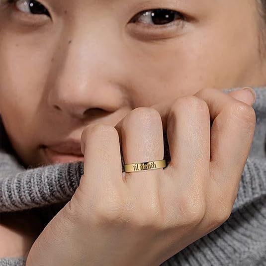 4mm Til Death Ring, Gold Rhodium Ring, Til Death Band Ring, Personalized Ring, Mens Ring, gift for men, promise ring, wedding gift For Him 925 Sterling Silver Ring Width - 4mm This one is a slim dainty design signet ring, which is minimalist in nature and you can wear it alone as well as with your other minimal rings. Item details: Metal-925 sterling silver Finish-Polished Ring Width 4mm Personalized - If you want other Enamel color please enter in personalized Box.