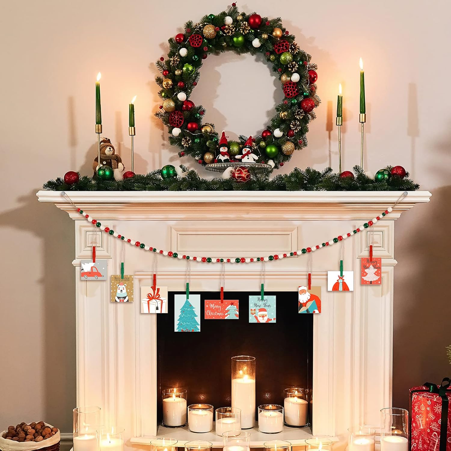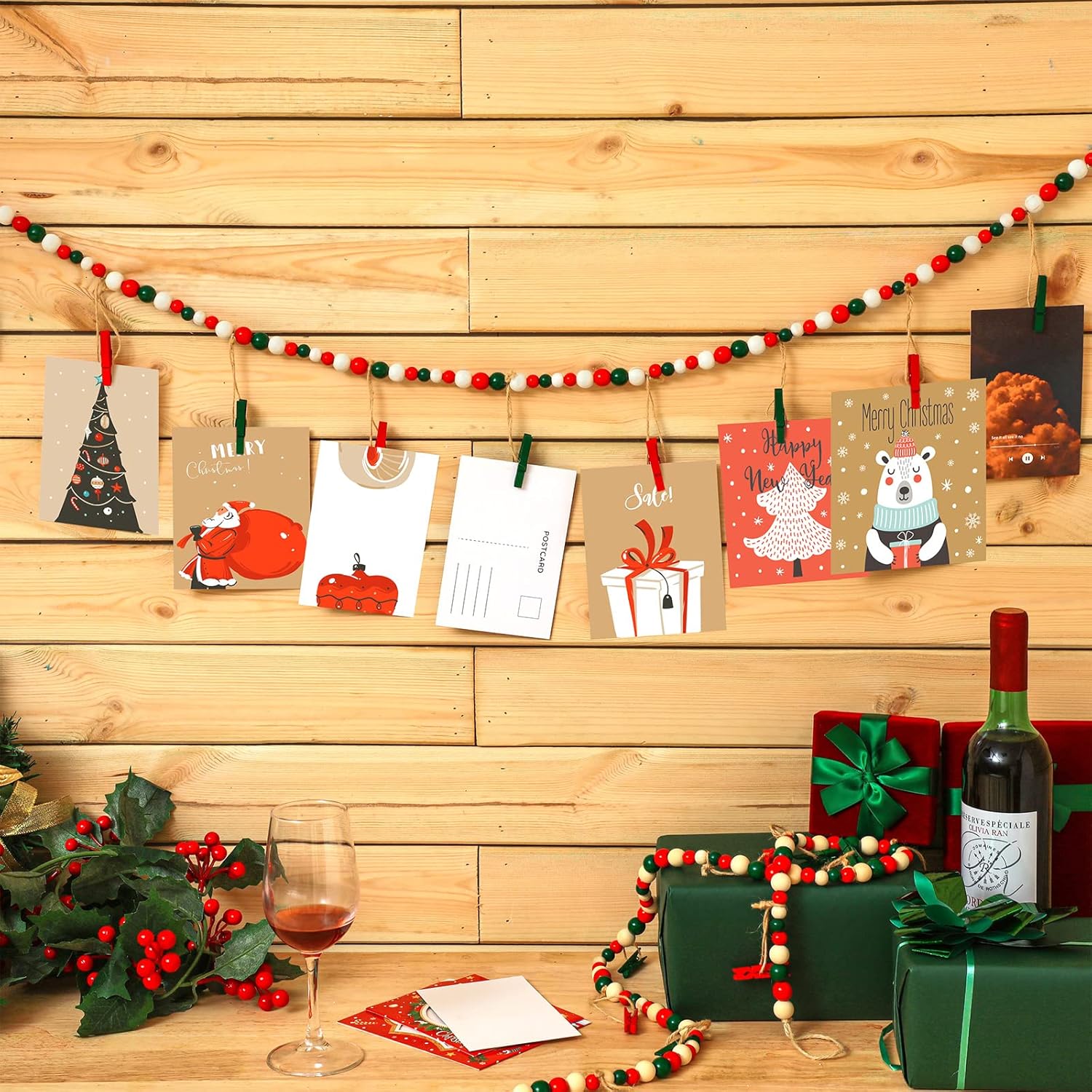 Features: Thoughtful gift: This photo banner will be a thoughtful Christmas and housewarming present for your friend or your loved ones, they will be happy and surprised to receive this warm gift. Easy to assemble: You simply need to use the wood clips to hang on the photos, pictures, artworks, paintings and so on. It will not take you too much time, and after you hang it on, you can take some lovely photos with your family members. Specifications: Material: Main color: white, green and red Size: Boho garland: about 110 cm/ 43.3 inch long, Wooden beads: about 1.6 cm/ 0.63 inches and about 1 cm/ 0.4 inches Package includes: 4 x Photo banner with clips Notes: Manual measurement, please allow slight errors on size. The color may exist a slight difference due to different screen displays