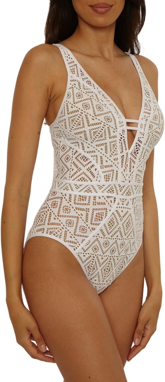 | Style Name | Color Play One Piece Swimsuit, Plunge Neck, Crochet, Bathing Suits for Women |