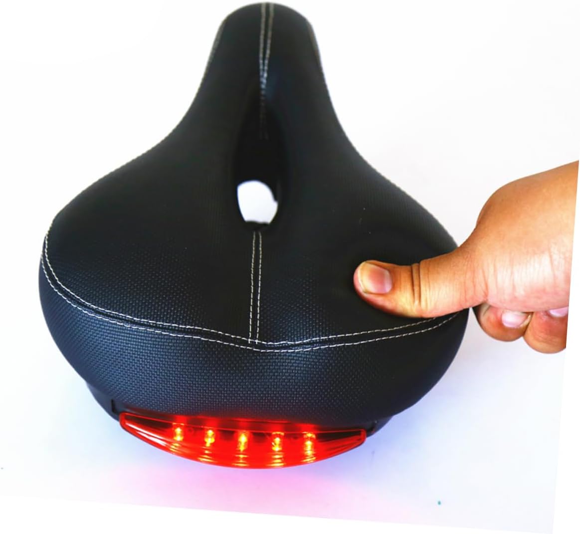 Package Include 1 x Comfortable Men Women Bike Seat Pad Leather Wide Saddle Cushion with Taillight Waterproof Dual Spring Designed Breathable Fit Most Bikes Characteristics - Size: About 27.5 x 21.5 x 10cm/10.8 x 8.5 x 3.94inch(LxWxH) gel seat cover for bike. - Color: Black bike seats comfort. - Material: bike seat cushion cover. -Product Info:Bicycle saddle with light - The bike saddle cushion surface is non-slip and wear-resistant. It is durable, comfortable, and elastic. Providing great protection for buttocks bike seat cushion wide. - Taillight design makes it more eye-catching and when riding at night or rain! It can offer optimal visibility for cycling, solving the trouble of buying and installing taillight. Ensuring your safety and offering you protection at night mountain bike cushion. - The bike saddle can be mounted on most standard seat post, dual-track or clamp tube easily. This bike saddle fits for most bikes, such as road bike, , cruiser and mountain bike, etc. Designed for men, women, boys, and bike seat cushion extra wide.Goods Descriptionreplacement bike seats Suitable for most bicycles, such as road bike, mountain bike, common bikes, etc.adult bike seat It is durable, comfortable, and elastic.gel seat cushion Providing great protection for buttocks.bike seat comfort Our narrow design in front side allows thighs to move freely in riding without rubbing thigh.padded bike seats Taillight design makes it more eye-catching and when riding at night or in rainy days.bike seat cushion cover Adopted from , the bike saddle cushion surface is non-slip and wear-resistant