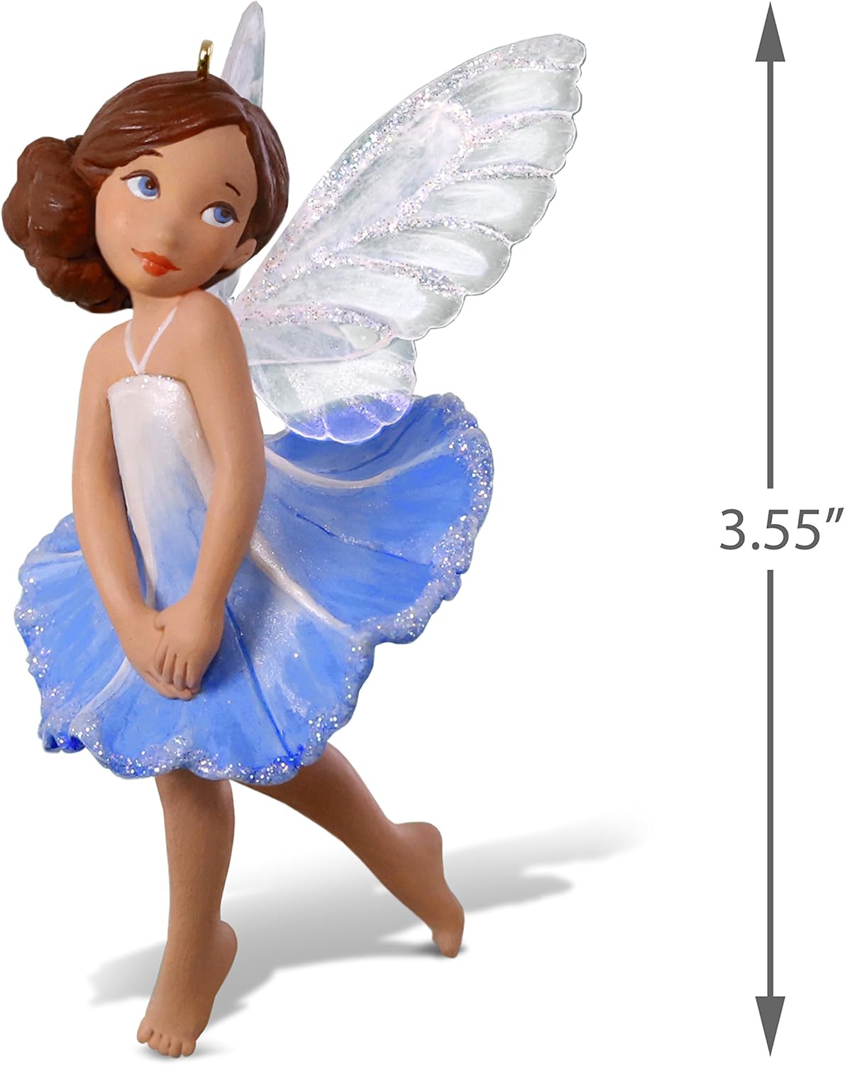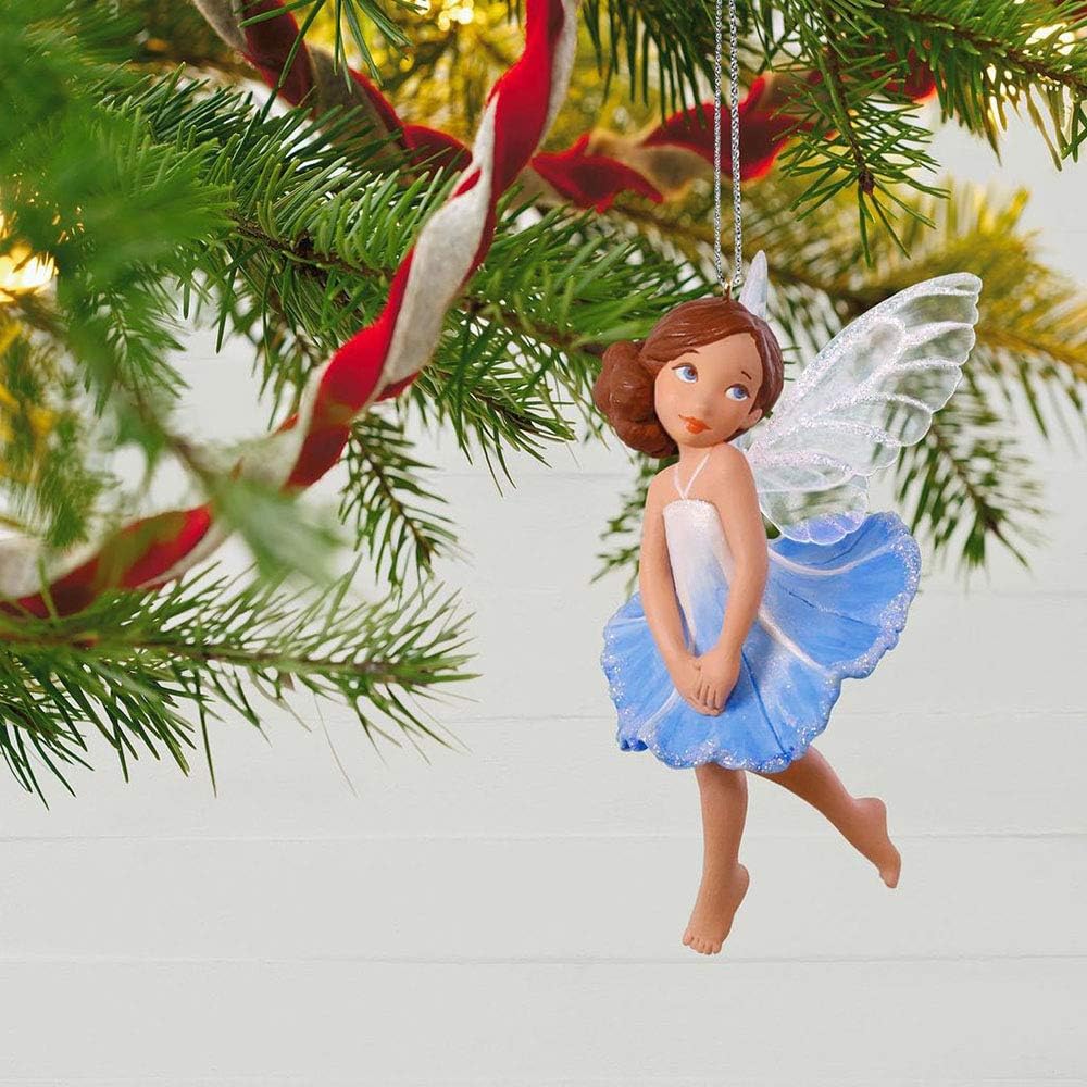 Make the holidays more beautiful with Morning Glory. From a whimsical fairy garden to your home, this pretty pixie's iridescent wings, glittery flower petal dress and sweet expression make Morning Glory a lovely addition to your collection of Fairy Messenger Christmas tree ornaments. Christmas tree ornament is 14th in the Fairy Messengers collector's series. Artist crafted by Kristina Gaughran, this Christmas tree ornament comes pre-packaged in a box for easy gift giving, preservation and storage. Dated 2018 in copyright. With unparalleled artistry and exceptional detail, each festive and collectible Keepsake Ornament is made for years of celebrations. From preserving precious memories to commemorating special milestones and interests, there's a Hallmark ornament for everyone on your gift list. Hallmark has been your family-owned creator of greeting cards, gifts, gift wrap, ornaments and more for over 100 years. We take deep pride in helping individuals connect in just the right way. Plastic Christmas tree ornament is lead-free and measures 1.81" W x 3.55" H x 2.1" D.