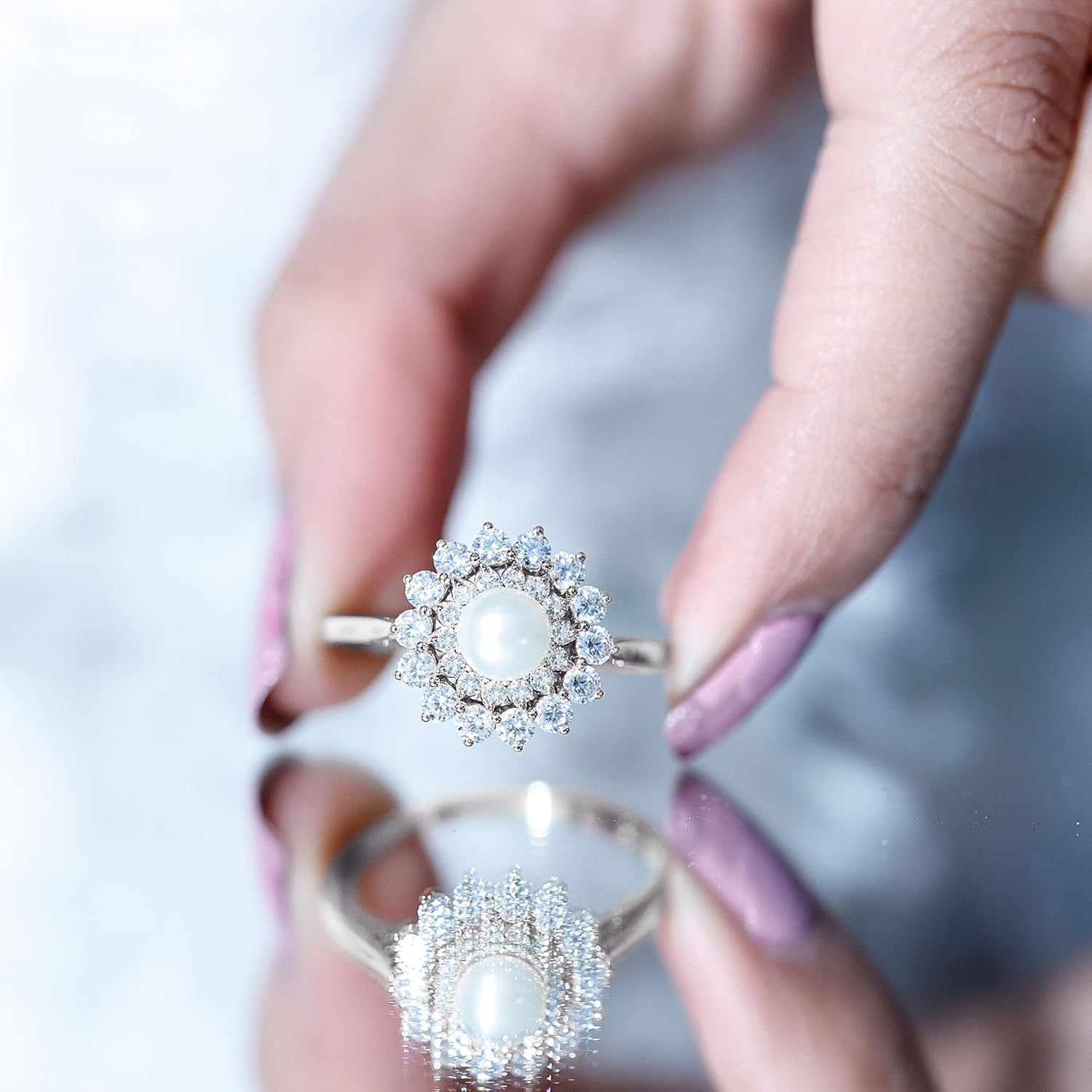 | Gem Type | Created Pearl, Moissanite |