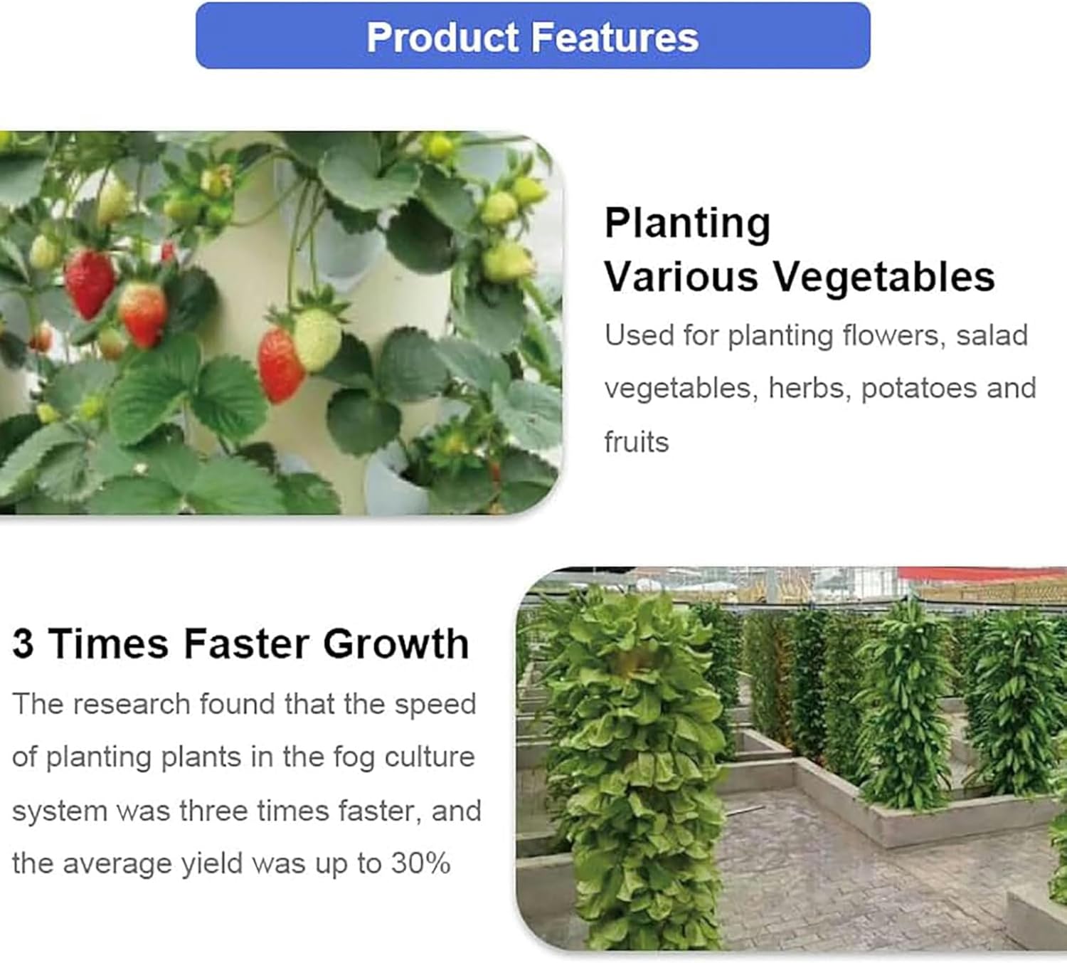 Advantage1. Without dirt, clean and health2. Organic vegetable culture at ease3. Vigorous Creation, greater returns4. three -dimensional culture, space savings SpecificationProduct name: Aar TorreMaterial: Plastic, Food Quality PPWhite colorDiameter: 11 cmHeight: 12.5 cm/> Water tank: 20LSize: 44*28*28cmWeight: 3kgPackage Included1 x hydroponic planting kit