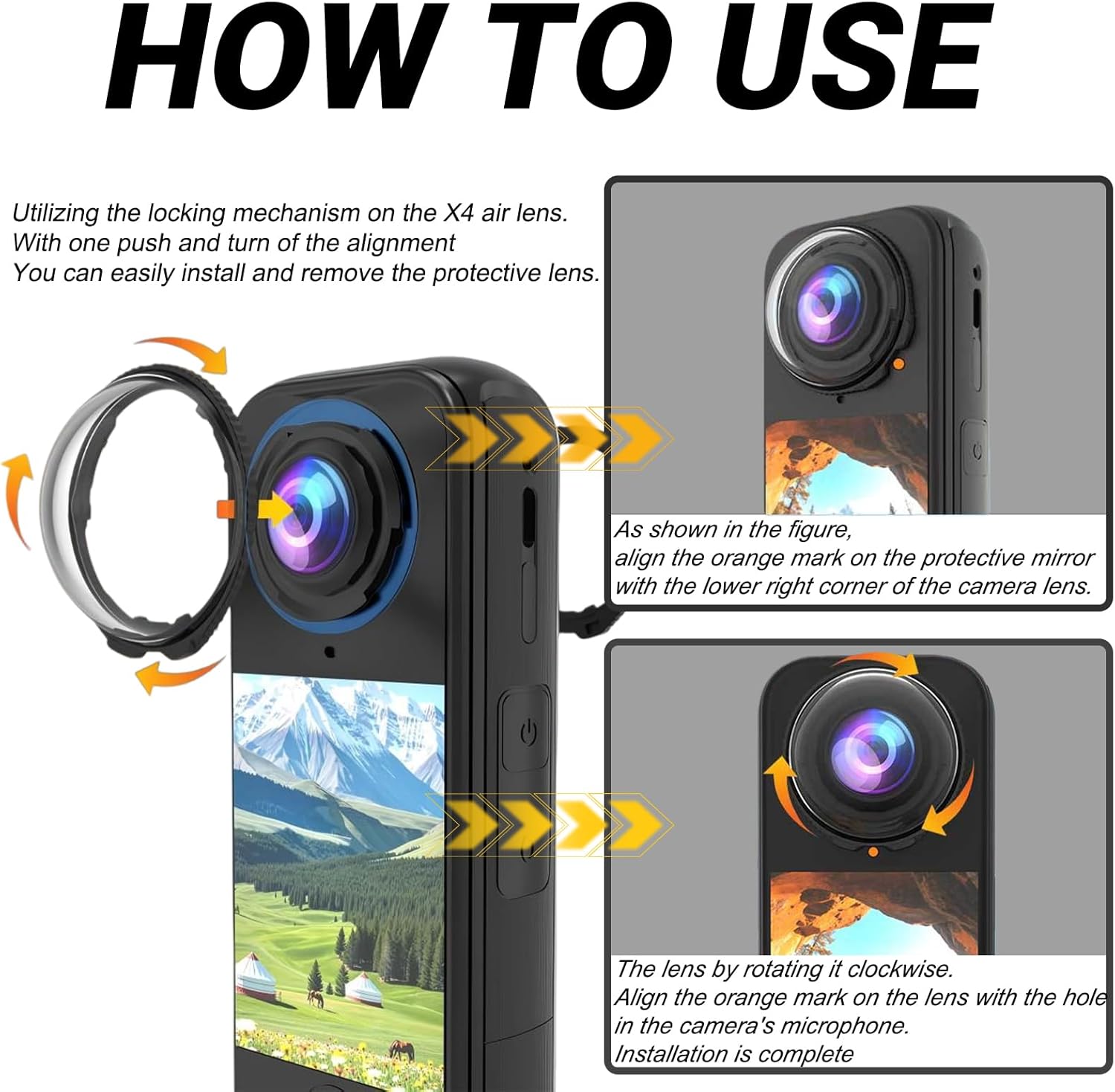 "With the Insta 360 X4 Air Premium Lens Guard Set, you can fearlessly record every moment. The 9H tempered glass lens guard takes the impact, scratches, and dust, so your camera's native lens doesn't have to. Its crystal-clear transparency ensures your 360° footage remains stitch-perfect and vibrant, with no distortion. Meanwhile, the anti-fingerprint screen protector keeps the touchscreen responsive, even with gloved hands or sweaty fingers."
