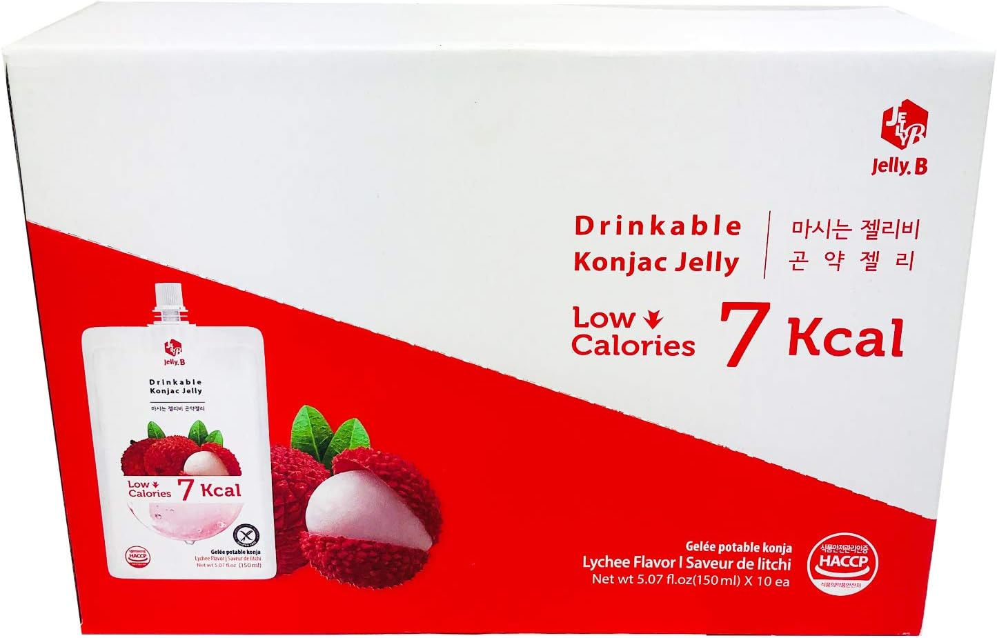 JELLY B Drinkable Konjac Jelly (10 Packs of 150ml) - 0 Gram Sugar, Low Calorie, Only 7 kcal Each Packets (Lychee)