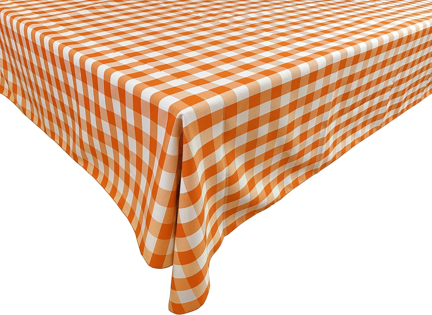Checkered is a beautiful answer to a wide variety of table-setting needs.Make even a simple meal a stylish affair with this restaurant style easy care tablecloth.100% polyester tablecloth is wrinkle free and stain resistant it can withstand various washing while maintaining it's elegant look. The cloth is made seamless in one piece, and the edges are surged for a clean look. PLEASE MEASURE YOUR TABLE BEFORE CHOOSING THE SIZE!