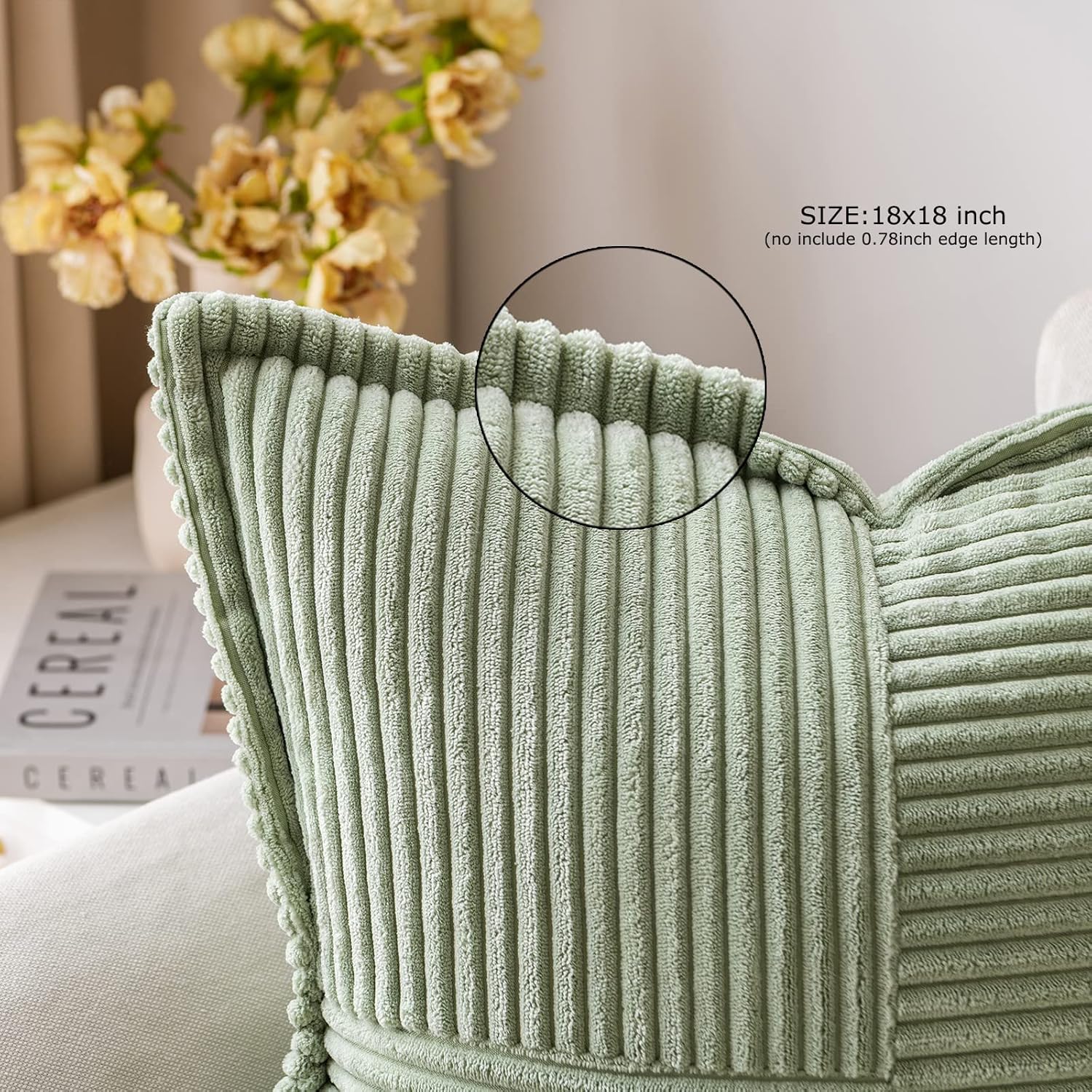 MIULEE Pack of 2 Decorative Super Soft Boho Striped Pillow Covers Sage Green Bundle Set of 2 Pillow Inserts 18x18