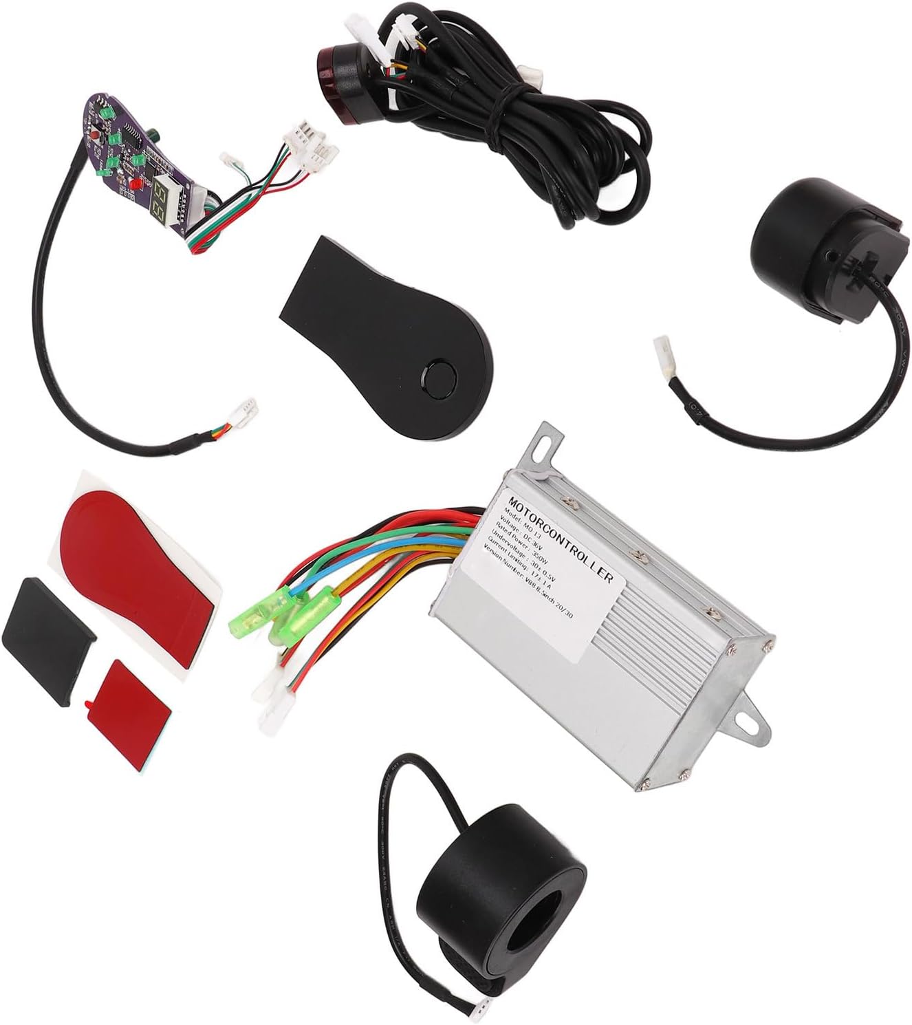 Specification:Item Type: Electric Scooter Controller KitMaterial: Aluminum, PCB, plasticWeight: Approx. 362/12.77ozController Voltage: DC36VController Rated Power: 350WController Maximum Current: 17±1APackage List:1 x Controller1 x Board2 x Paster2 x Board Cover1 x Thumb Throttle1 x Taillight Part1 x Headlight Part