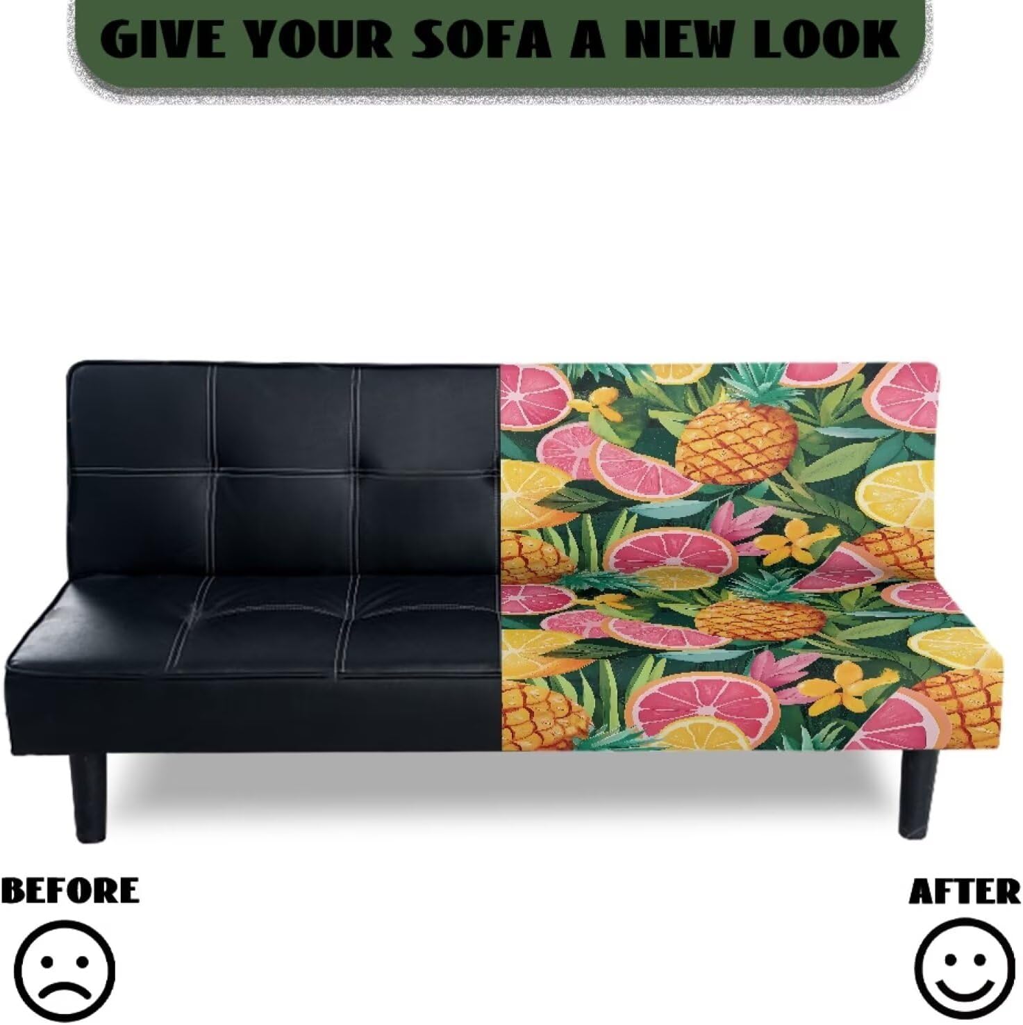 Material: Polyester & Spandex Fit Dimensions: Sofa length: 68 to 85 inches Sofa width: 23.5 to 31.5 inches Backrest height: 23.5 to 31.5 inches Sofa cushion thickness: 8 to 10 inches Package Includes: 1-piece x Armless Sofa Cover Elastic & Stretchable:Fits armless sofas with a sitting width between 68–85 inches for a secure, tailored fit. The elastic edge ensures the stretch futon slipcover stays in place, providing a snug fit without shifting Protect Your Furniture: Shields against scratches, spills, stains, and everyday wear and tear Chic & Stylish Design: One-piece armless sofa bed cover for a sleek, beautiful look. Ideal for futons and armless couches Machine Washable: Easy to care for with machine washable fabric for convenient cleaning long-lasting and Comfort: Made from stretchy, sturdy fabric for comfort and long-lasting use