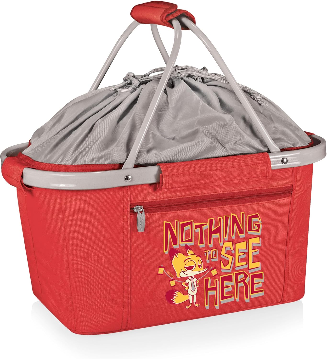 Turn everyday errands into an adventure with the Zootopia Metro Shopping Basket Cooler, a versatile carryall designed for life on the go. Whether you’re browsing the farmers market, heading to the beach, or packing a picnic, this insulated basket delivers cool convenience with a playful Disney twist. The insulated interior helps keep food and drinks cool while you travel, making it perfect for fresh groceries, picnic lunches, or chilled beverages. An expandable drawstring top adds flexibility and security, helping prevent spills while accommodating taller items or fuller loads. When the day is done, the basket collapses flat for easy storage in your trunk, closet, or pantry, ready for the next outing. Built around a lightweight yet sturdy aluminum frame, this basket provides dependable structure without added bulk. The durable fabric exterior holds up to frequent use, while reinforced double handles make carrying comfortable even when fully loaded. With a generous expanded size of 19 inches by 12 inches by 9 inches, there’s plenty of room for market finds, snacks, and essentials. Finished in a bold red color with Zootopia inspired flair, this collapsible cooler basket blends function, personality, and everyday practicality. From quick store stops to leisurely outdoor plans, it’s the basket that keeps things cool, organized, and effortlessly fun.