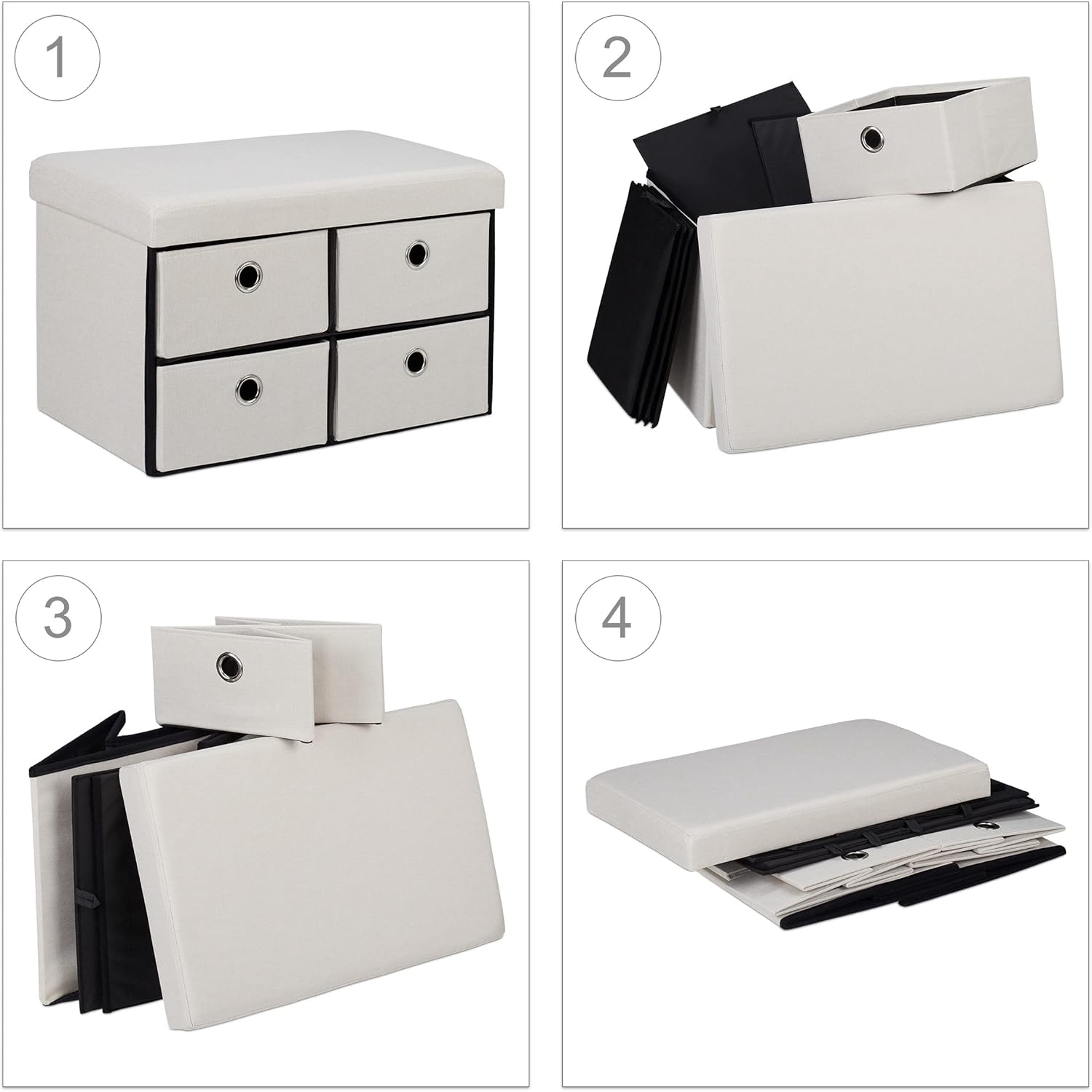 | Item Type Name | Relaxdays Folding Bench with Storage Space, 4 Drawers, Hallway, Living Room & Bedroom, HBT 39 x 60 x 38 cm, Cream |