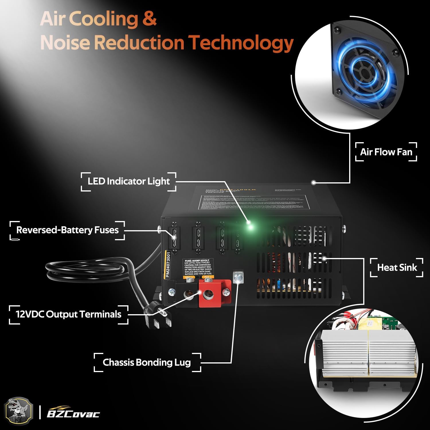 The PM4-120LK AC to DC Converter/Battery Charger efficiently converts 110V AC power to 12V DC, allowing for battery charging and powering 12V equipment. Equipped with advanced Smart Charging and adjustable power supply modes, it is designed to meet the needs of users and various environmental conditions. This unit ensures the full charging and maintenance of any battery type while delivering clean DC power. Ideal for RVs, automotive, boats, car audio systems, and any applications requiring 12V power or battery charging.