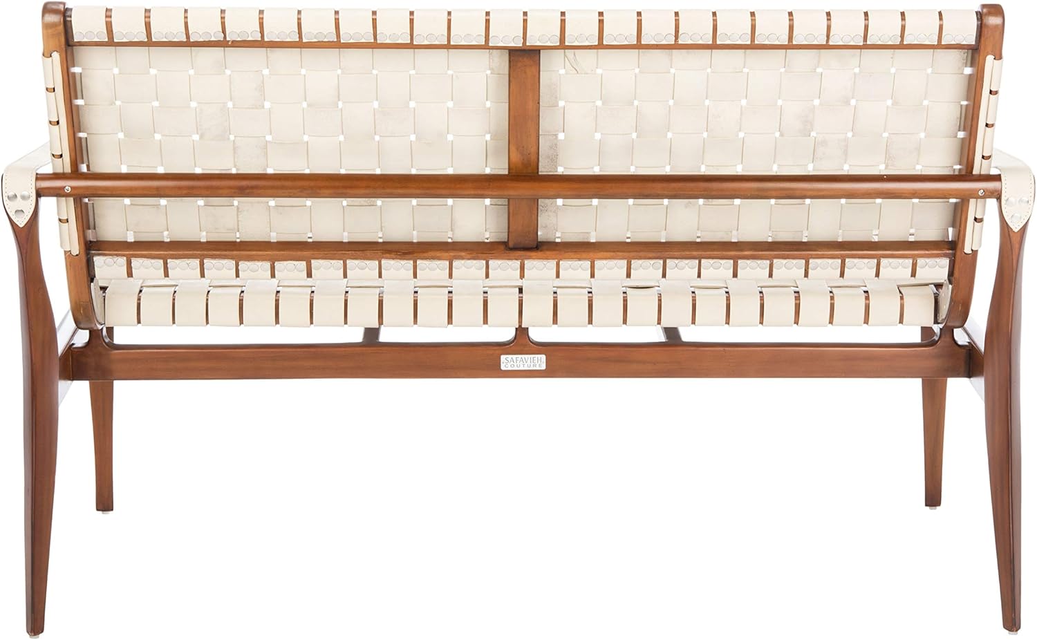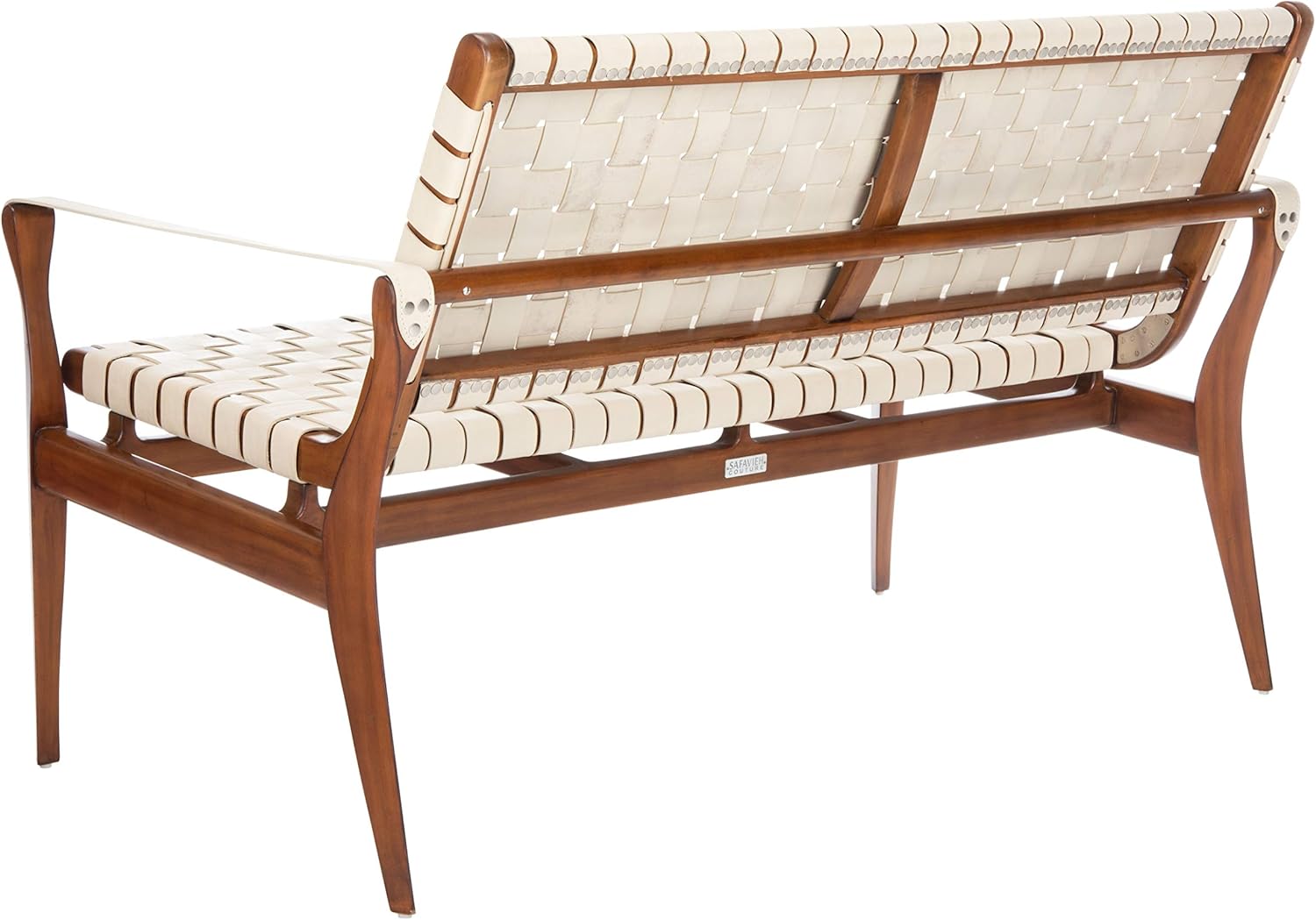 The epitome of classy-casual style, The dillian leather Loveseat makes a splashy impression in any entryway, Mod bedroom, or hall. Made with genuine top grade leather woven into a comfortable perch for two atop a strong mahogany frame, this couture piece is colored in pure white for a glam finish to this relaxing leather Loveseat.
