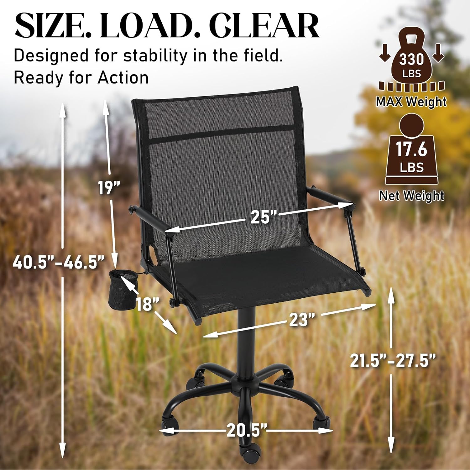 | Included Components | Adjustable Legs, Arm Pad, Cup Holder, Hunting Blind Chair |