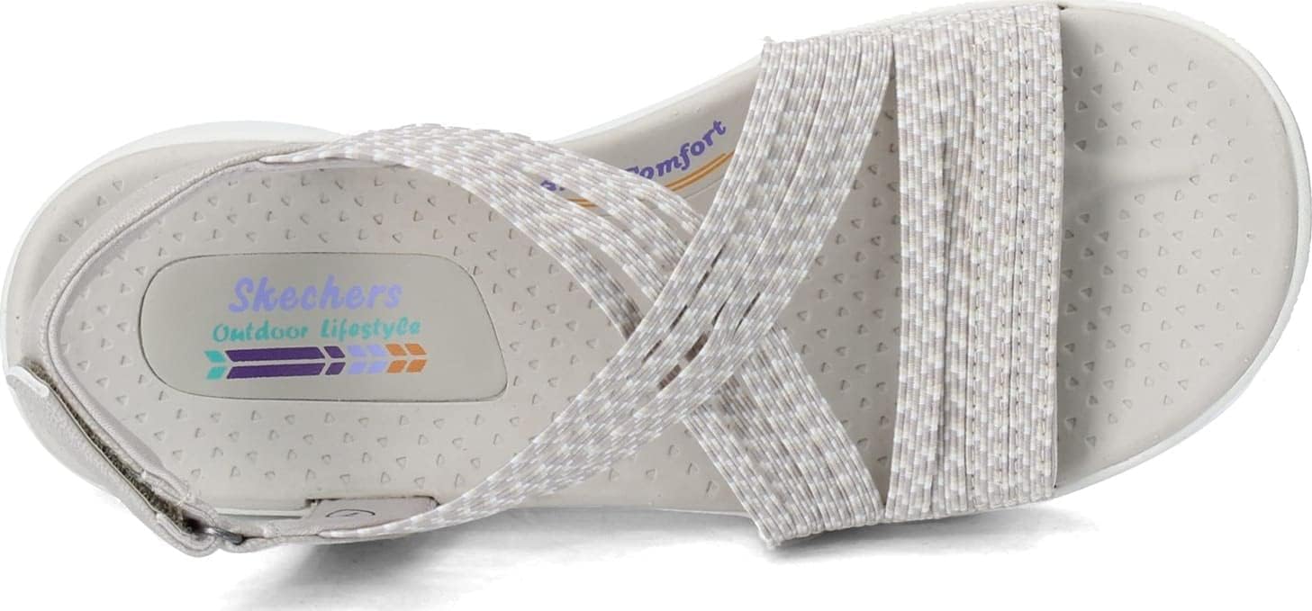 Soft stretch fabric and smooth synthetic upper in a sporty casual comfort slingback strappy slide sandal with color accents. Arch Comfort design footbed.