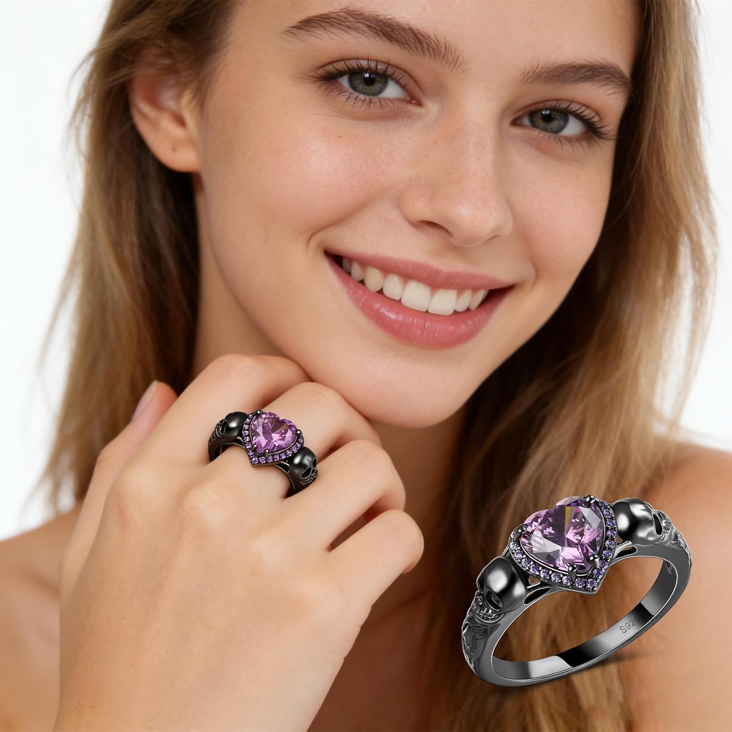 Black Sterling Silver Gothic Rings for Women Valentines Day Gifts Black Goth Accessories