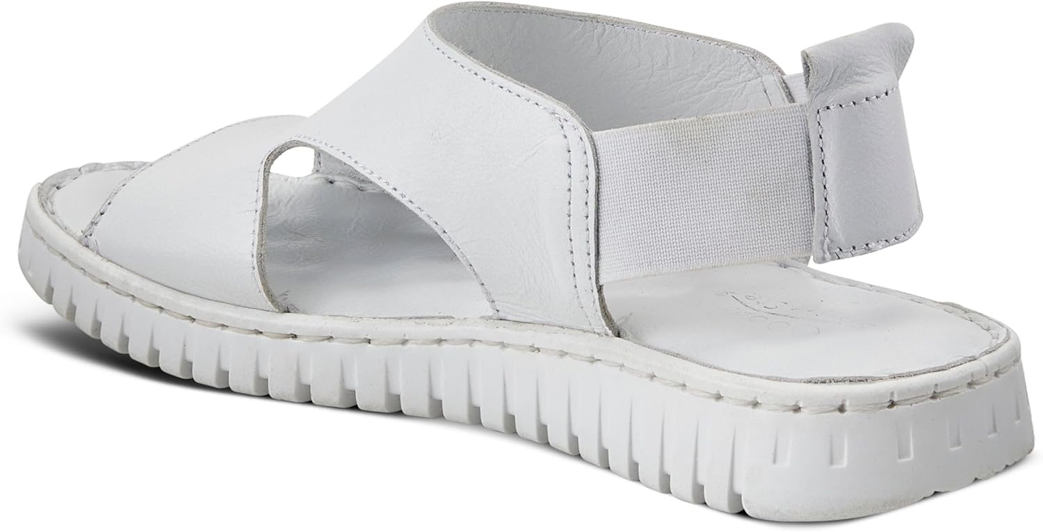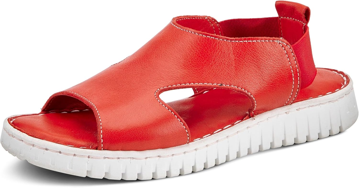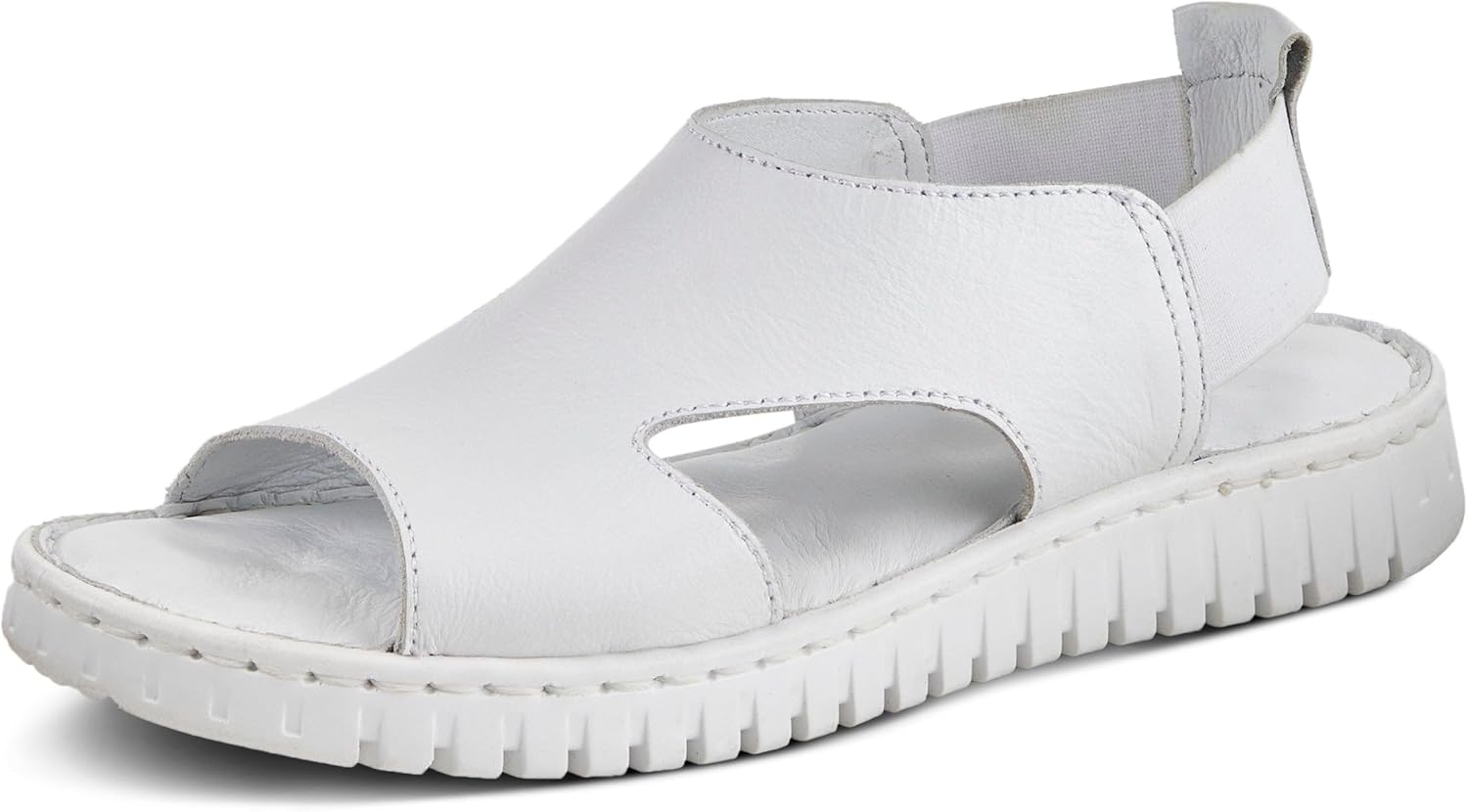 Comfortable and athletic sporty saw outsole. Fully Leather upper in a peep toe silhouette with side cutouts. Pillow top cushioned footbed for all day wear. Goring in the back for that comfortable fit.