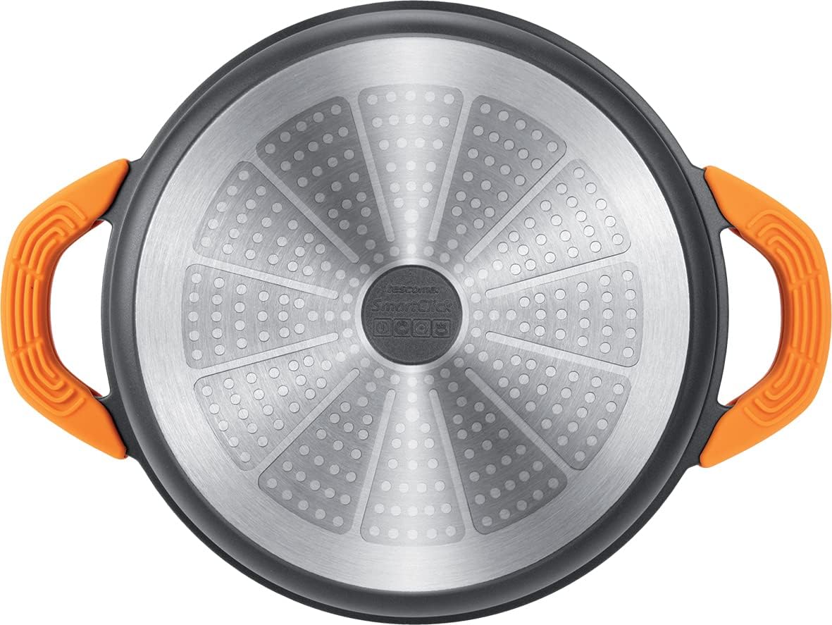 Solid deep frying pan with first-class non-stick coating both inside and outside and with induction bottom, suitable for all types of cookers and for the oven. Removable heat-resistant silicone grips for safe handling and easy cleaning. Dishwasher safe. 5-year warranty.