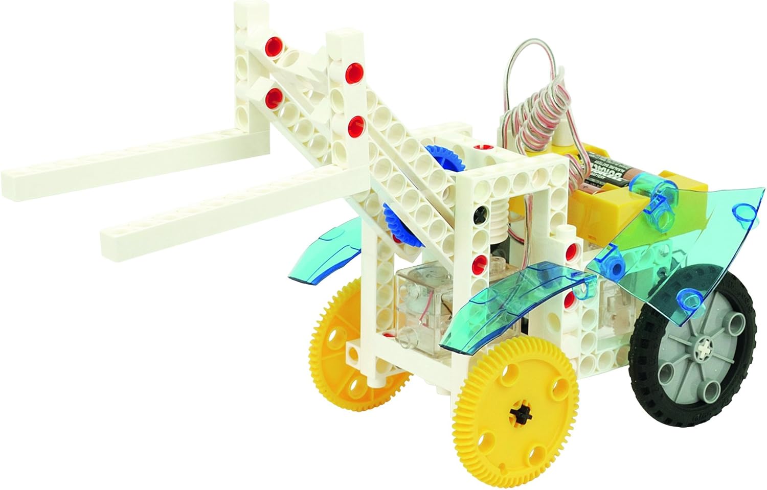 Deluxe 20-Model Version. Build your own motorized vehicles and machines and control them with a wireless remote control unit. A unique six-button infrared remote allows you to control three different motors simultaneously, moving each of them forward or in reverse, with easy-to-activate touch sensors. The three motors can be combined to make complex vehicles and machines in numerous configurations limited only by your imagination. Assemble 20 models demonstrating different ways in which the motors can be used including a three-wheeled car, bat-bot, stag beetle, robot, battle car, ball collector car, forklift, tunneling vehicle, truck, drilling machine, crane, robotic arm and more. After you have built the models in the instructions, you can design your own remote control creations! The kit comes with three motors, remote control unit, battery holder and 155 building pieces. 128-page, full-color instruction book.