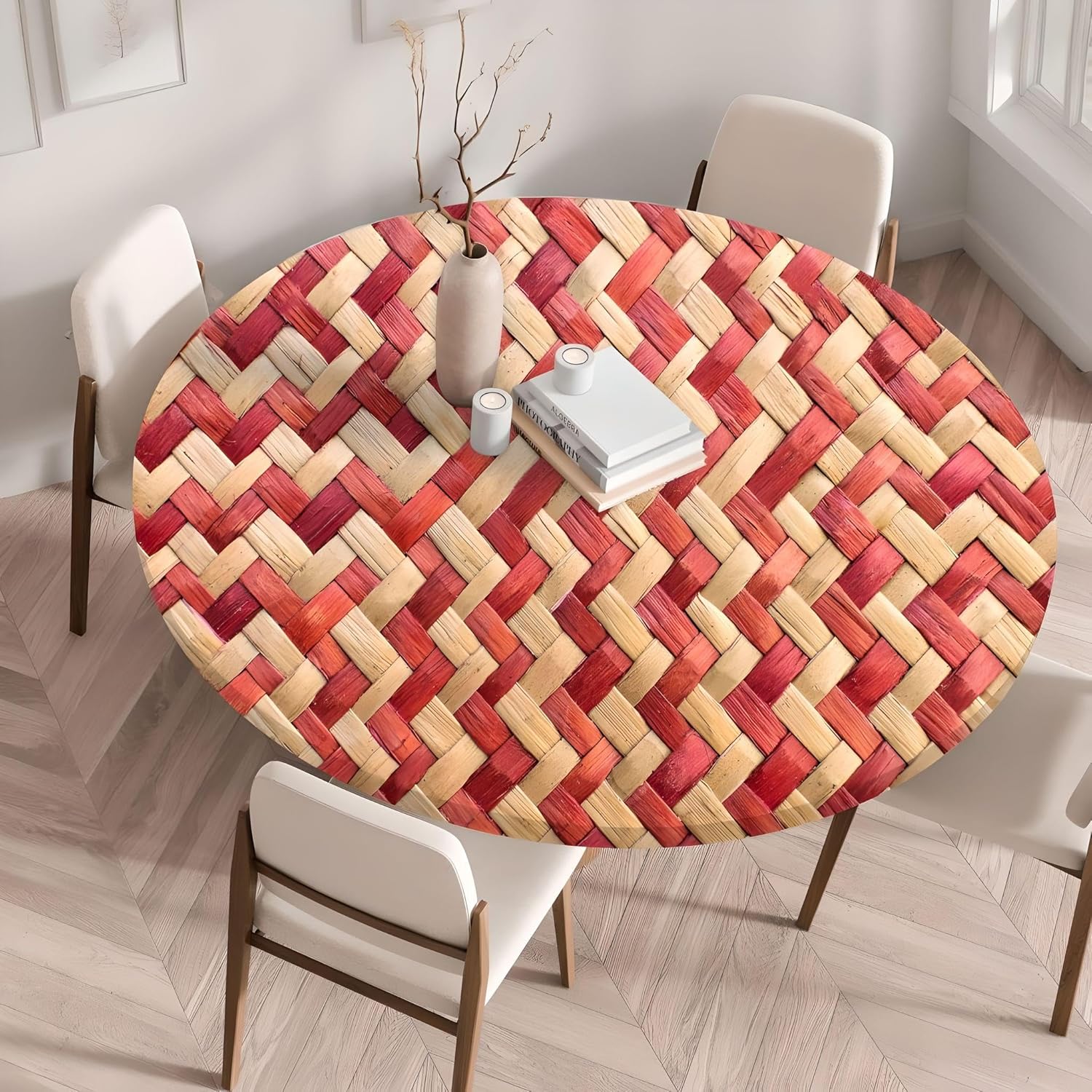 Cozomiz Round Fitted Waterproof Tablecloth Elastic Edged Tablecloth Wipeable Table Cloth Table Cover for Outdoor, Patio, Kitchen and Dining Room Unique Design & Beautiful:Our table cloth featuring and elastic edges keep the tablecloth tightly fitted and stay free from moving / falling off. Classic patterns in bright colors add a stylish vintage touch to these table cloth, they are perfect to lighten up your dining room. Waterproof & Durable:Made of Polyester with Water Resistant Coating, durable enough for long time to use, and water resistant prevent damage to the surface that could occur from spills penetrating, offers good protection for your table. Size: The table cloth with elasticized edge is suitable for round tables with a diameter in the range of 30-64 inches (or 80-165 cm).A bigger table will require a bigger tablecloth, and you can avoid the trouble of return & exchange by spending a few seconds measuring your table's size first. Easy Care: Machine washable Multi-Use?The polyester with water resistant Coating table cloth is waterproof and easy to clean great for general all-purpose activities like dining, painting, board gaming, and working with modeling clay. It is perfect for kids and family dinner, and keeps dirt and dust out of your outdoor patio tables.